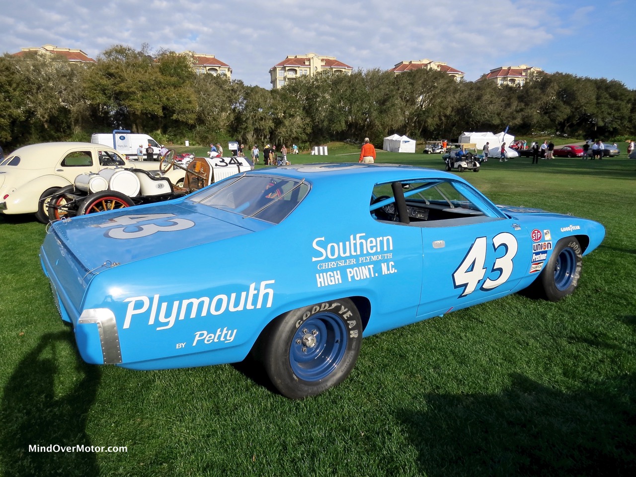 Left: Roadrunner crossing a road. right top: Animated characters roadrunner and wile. e. coyote. right bottom: richard petty’s 1971 Roadrunner #43. photographs courtesy of pinterest.