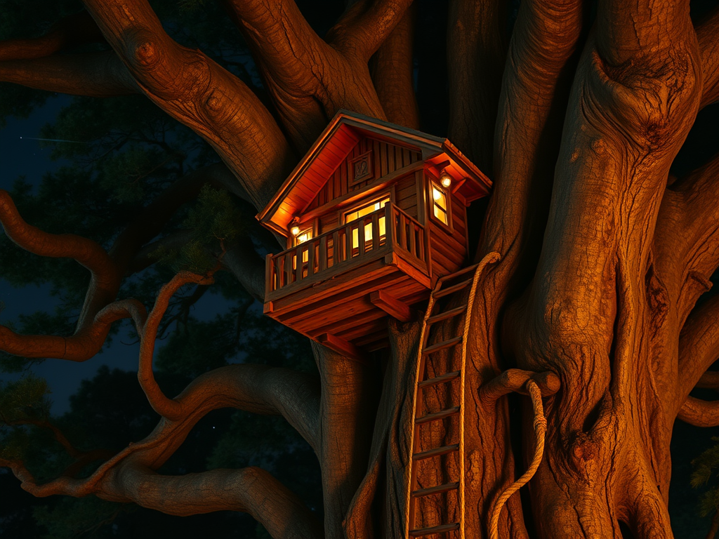 Nestled under a full canopy of branches, rests a delightfully engineered tree house. From a window, a young boy’s voice beckons me, “Come on up.”
