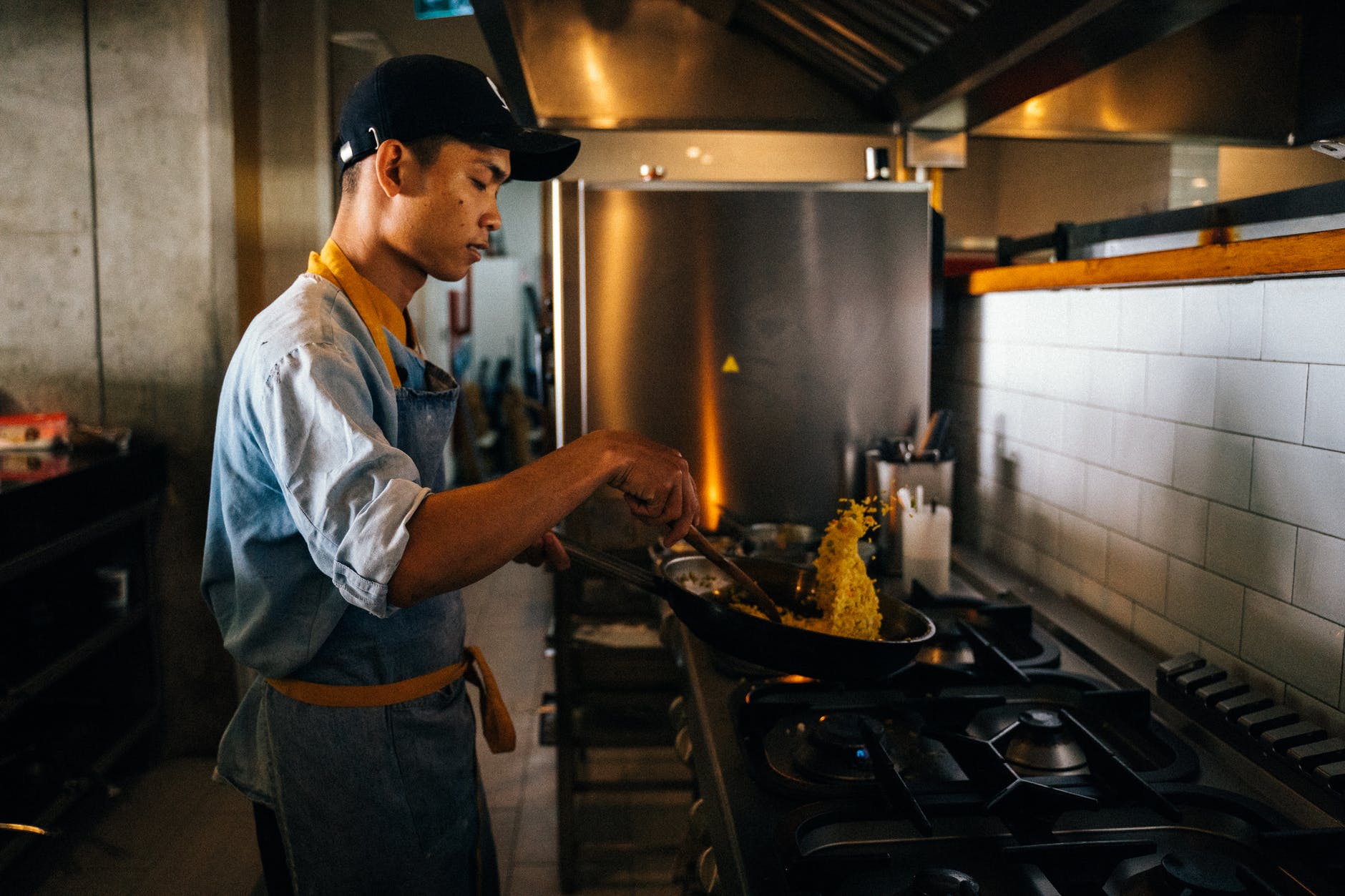 Solitary cook at truck stop—